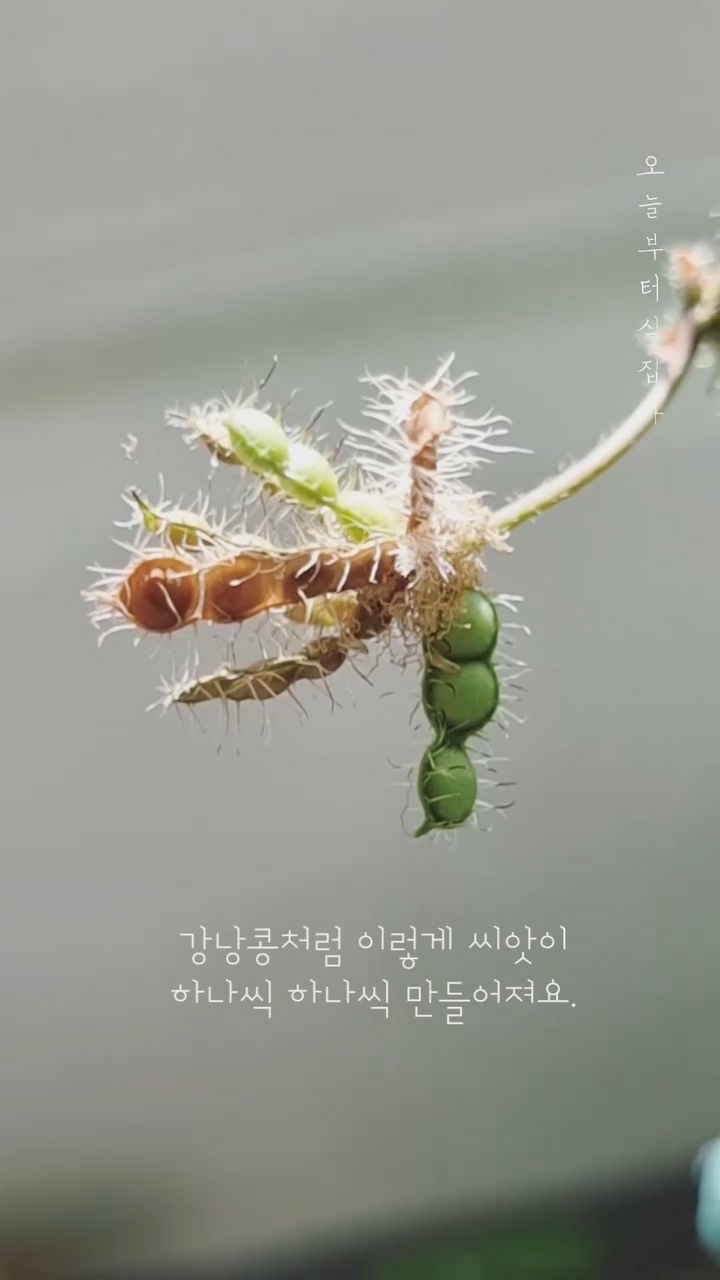초록의 씨앗이 점점 갈색으로 바뀌어요.