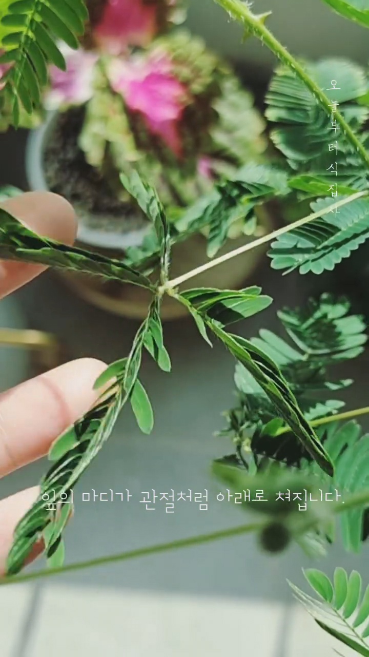 잎을 만지면 관절이 꺾이듯 잎줄기가 아래로 쳐진답니다.