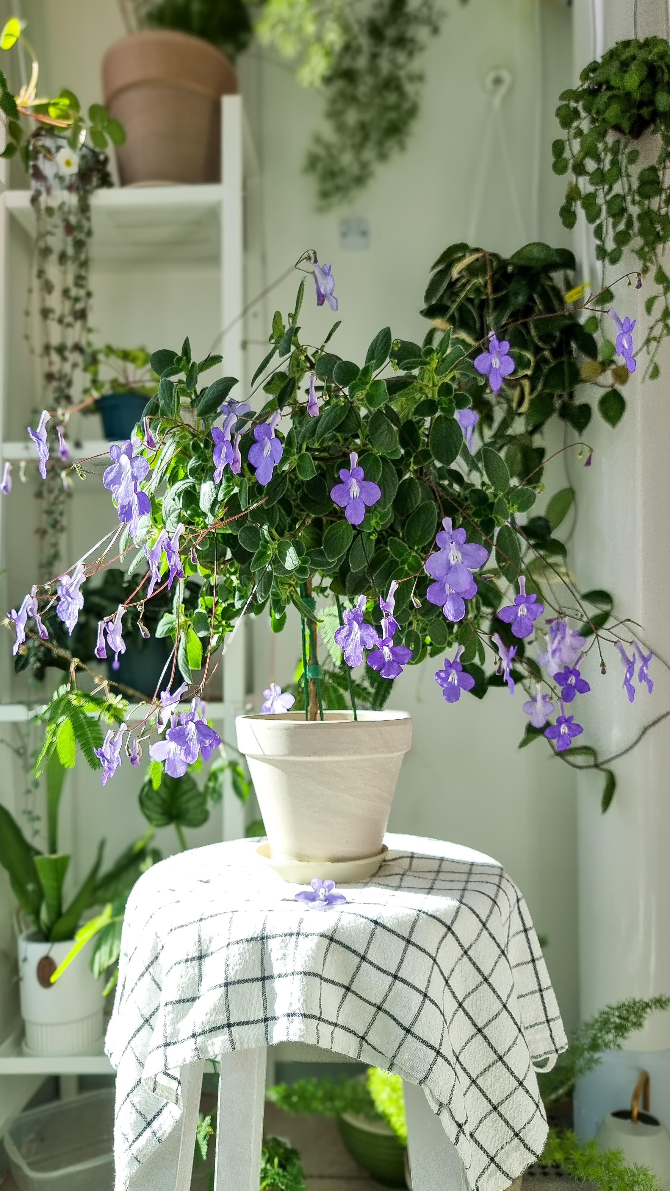 흰색과 분홍 삭소롬도 있지만 저는 이 보라 삭소롬이 제일 예쁜것 같아요. 통풍 중요하구요. 창문을 통과한 밝은 햇빛 듬뿍 받으면 예쁜 꽃을 많이 피워줄거예요.