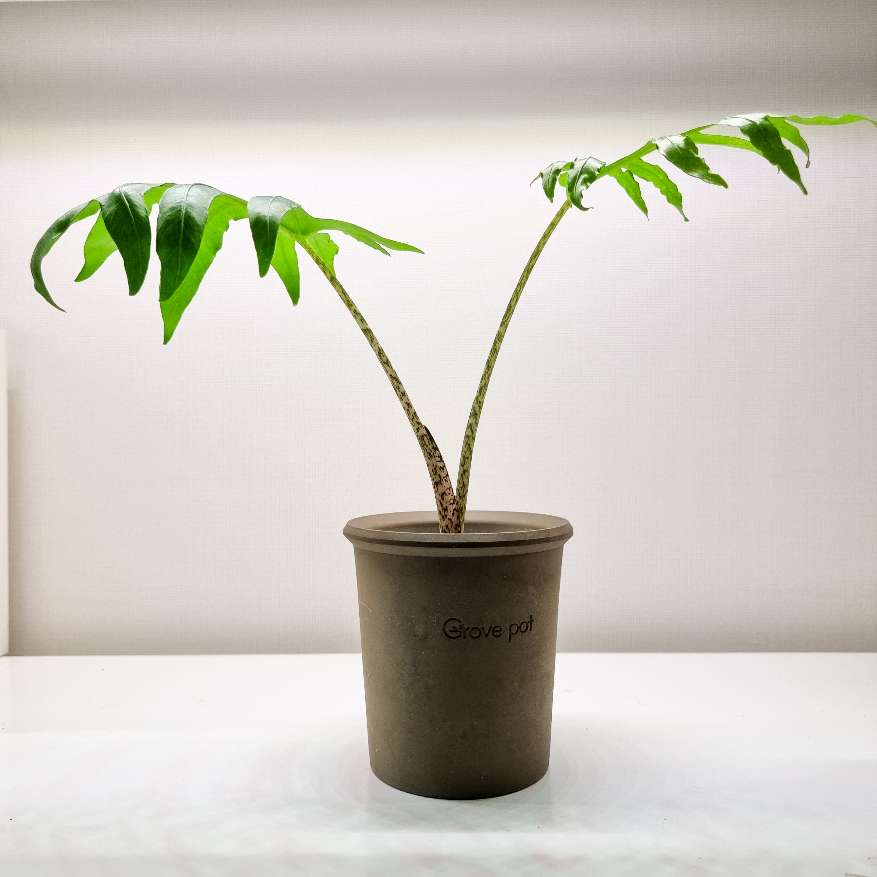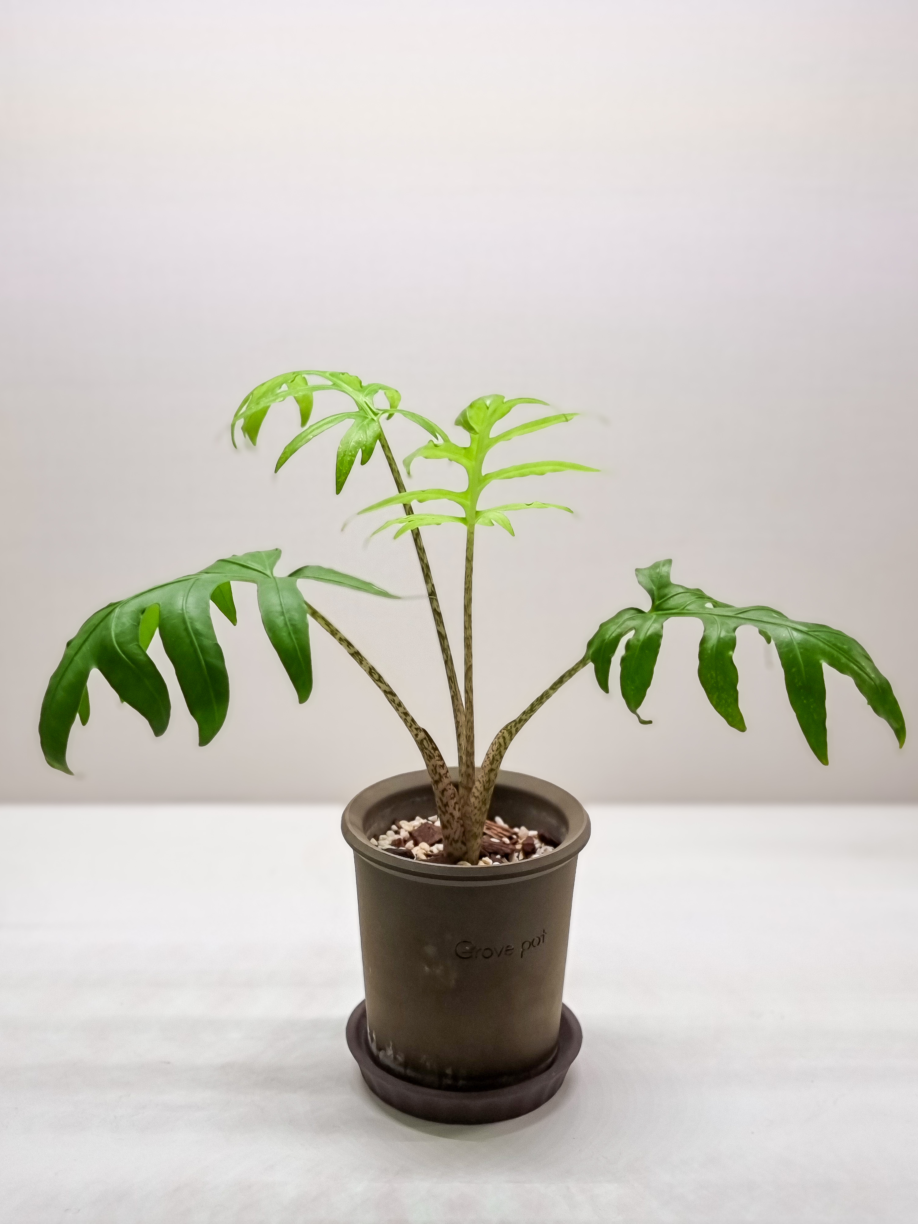 통기성 좋은 그로브팟에 식재를 해 주니 성장이 느리던 알로카시아 브랜시폴리아가 현재 잎을 4장이나 올려주고 있어요.