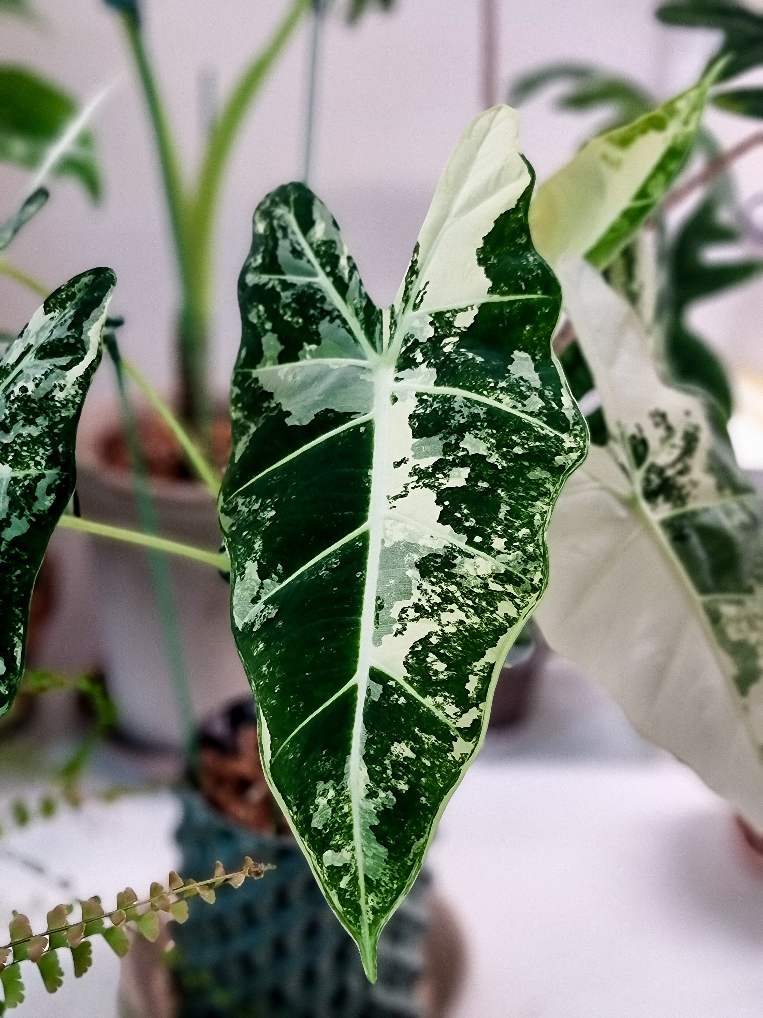 알로카시아의 경우 특히 과습에 취약해 뿌리양에 맞게 통기성 좋은 작은 화분에서 키우는게 팁입니다. 중간흙이상 물이 말랐을때 물을 주며 키우니 별탈없이 예쁜 무늬 내어주며 잘자라고 있어요.