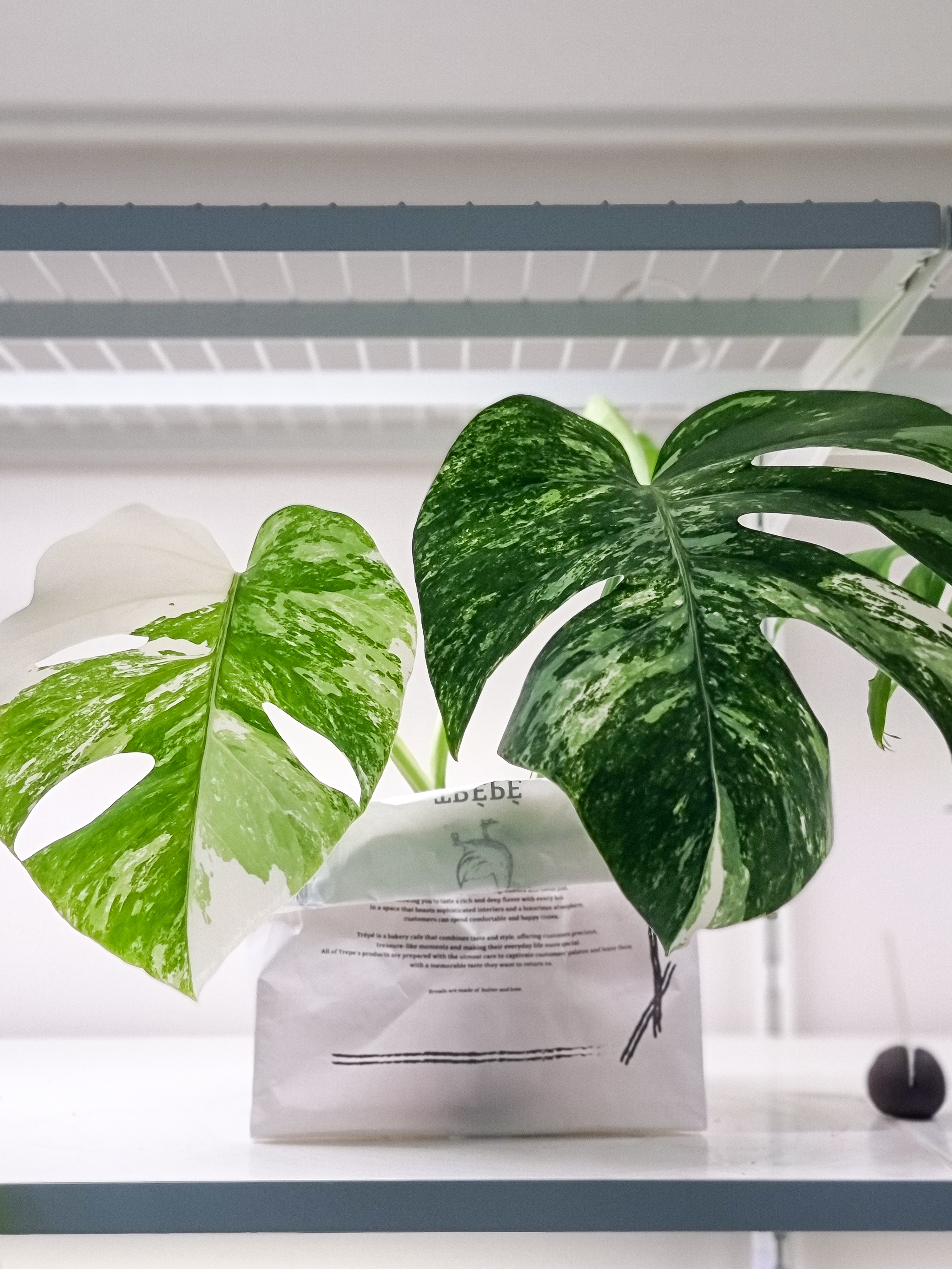 키운지 얼마 되지 않아 잎이 세장뿐이지만 대품이 되면 더 멋있어질 알보몬을 상상하며 키우고 있어요. 삽수 구입 후 아직 분갈이 전이라 동네 빵집의 빵 봉투(기름종이 제질)를 접어 화분 커버로 사용 중인데요. 너무 잘어울리고 예쁜 것 같아요.ㅎㅎ