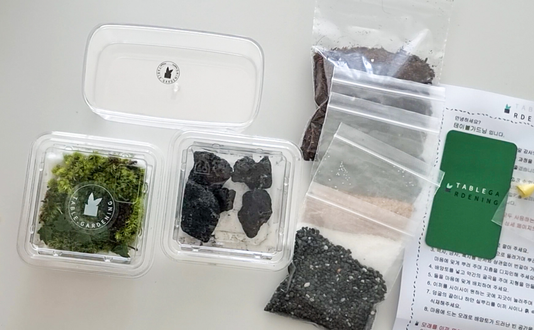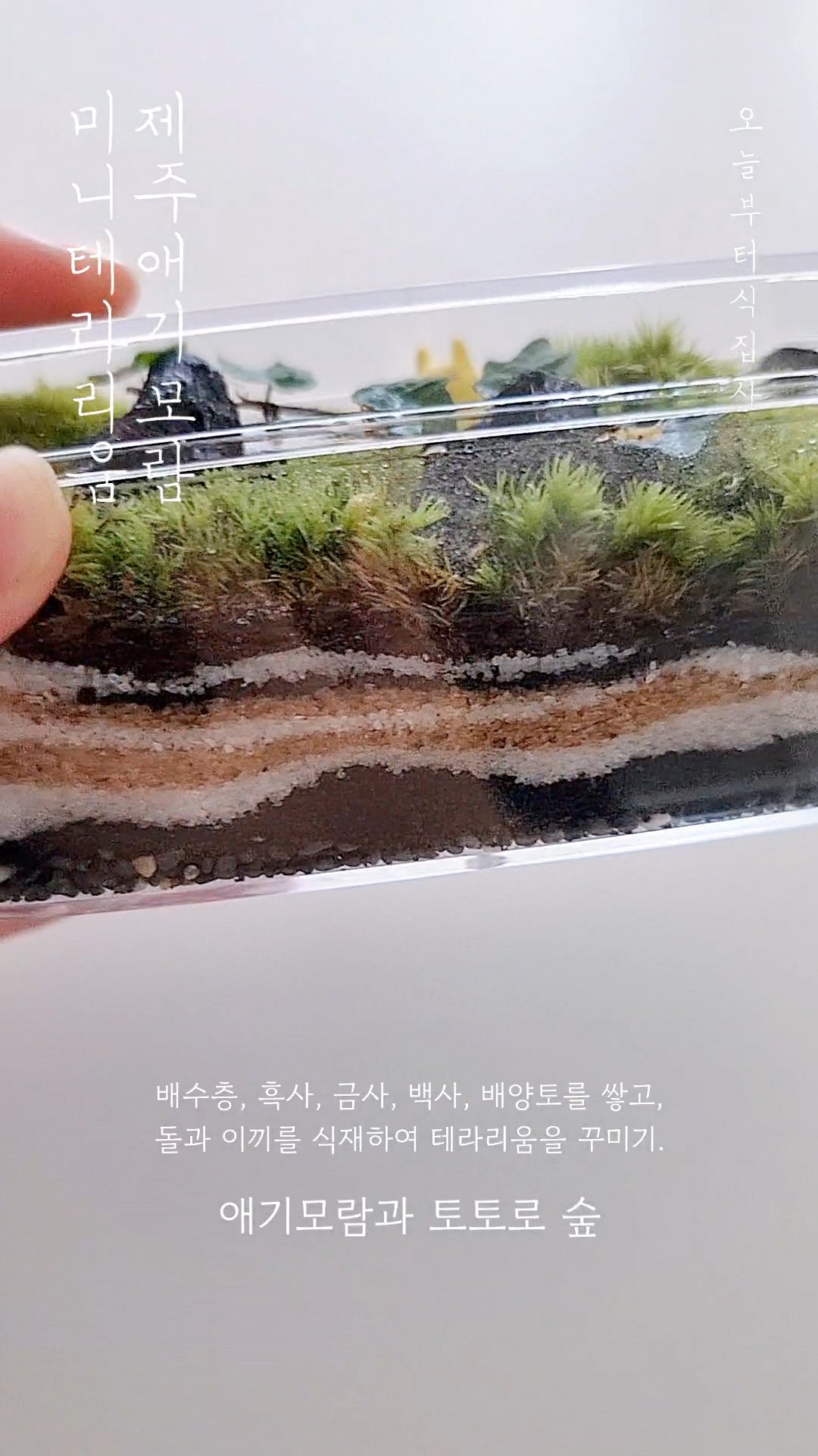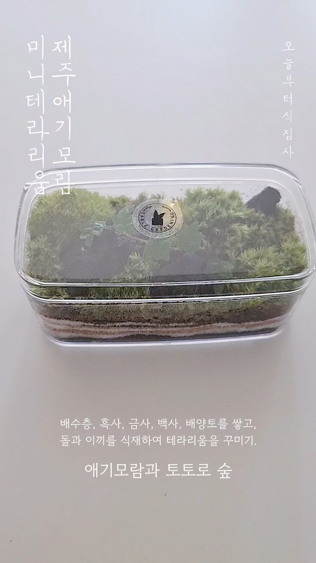 모든 재료가 소분되어 있어서 흙을 쌓고 이끼와 제주 애기모람을 얹어주기만 하는 간단한 작업인데요.
